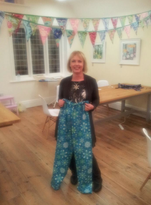 Lesley made a gorgous pair of PJ bottoms in the workshop with Claire.