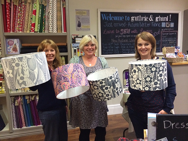 Some beautiful drum lampshades were made in the lampshade workshop - 3 using the very lovely Emma Hardicker fabric.