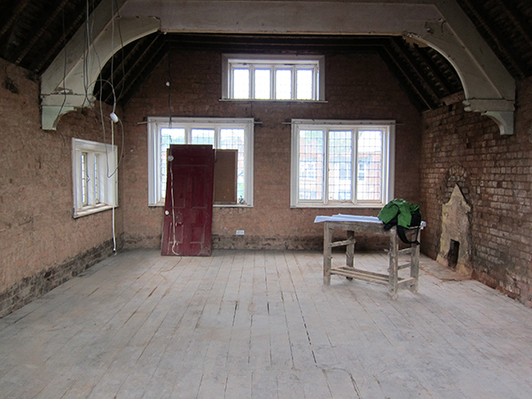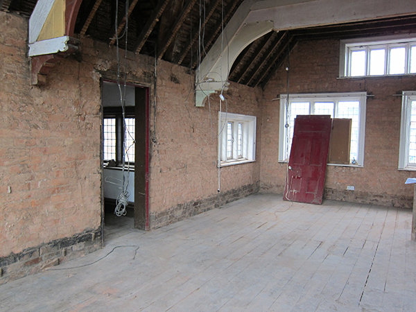 Our soon to be creative studio/workroom on the first floor has really been stripped back now and tidied up. We are looking forward to opening up the ceiling too so it will be a vast apex roof on the inside. I think this will really set off the a-frame arches as well!
