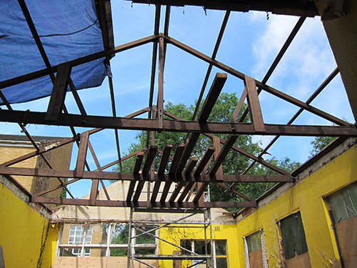 The other major step forward we have made is getting this roof down from one of the extensions at the back. There has been a leak in the roof for goodness knows how long and a whole section of the beams had rotten. Ivy had also grown all on the inside of the apex Jumangi style at the far end (which you can't really see here) so its a relief to finally have the roof gone really before it caused any problems.