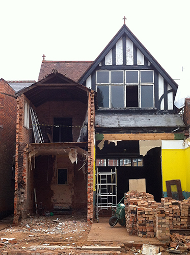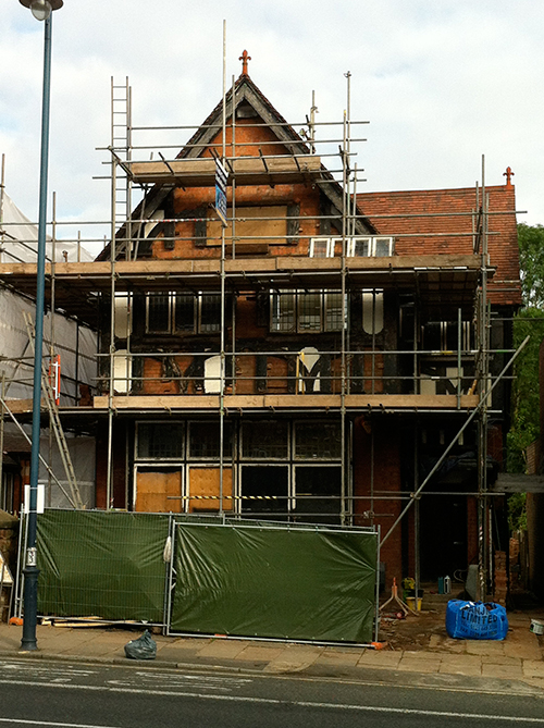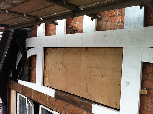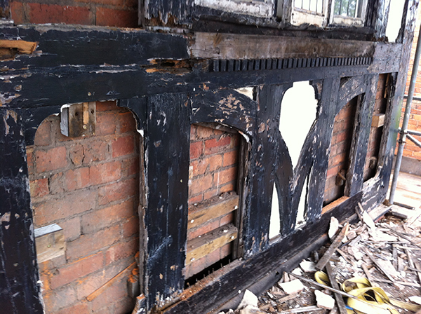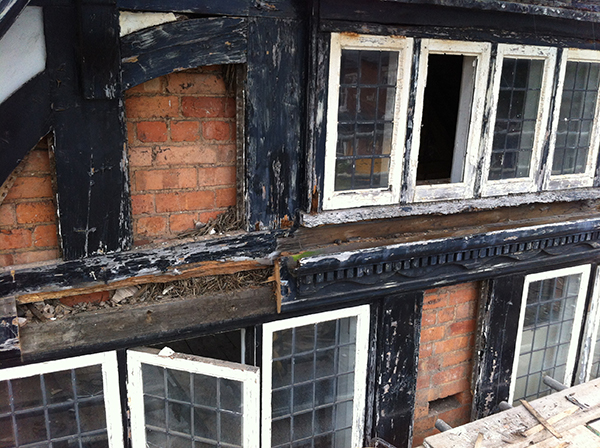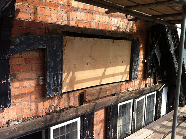 The mock Tudor panelling has also been stripped back and the rotten wood replaced.