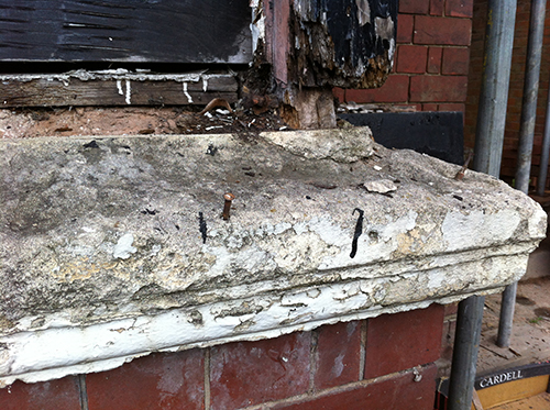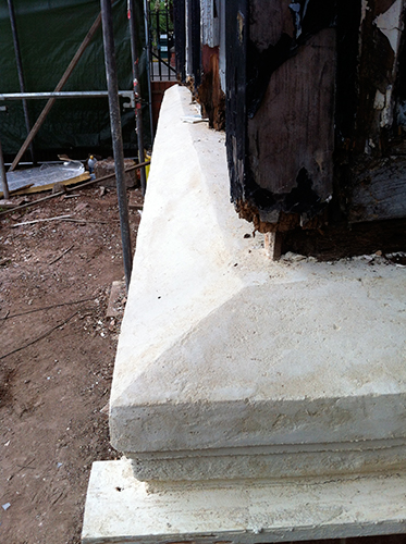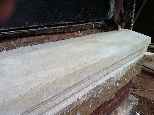 The sandstone window sill was a complete mess, really erroded and mis-shapen. So the stone mason has been busy fixing it up, as well as the cadbury stone.