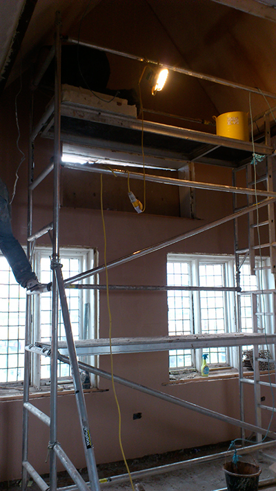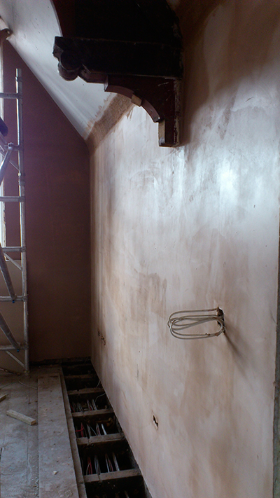 All the walls in that room have been boarded too and mostley plastered.