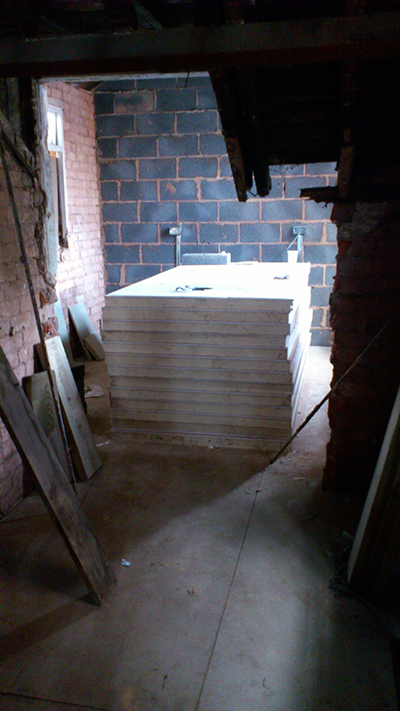 The other big thing ticked off this week was the new floor and landing getting put into the small wing section at the back of the shop building. All the joists needed replaced, but its nice and solid now! So of course it's been filled up with the big mama insulation boards...they take off so much room! Will be great once they get on the walls!