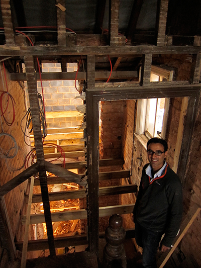 The ceiling in the first floor hall now goes all the way up to the apex of the roof.