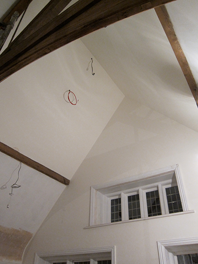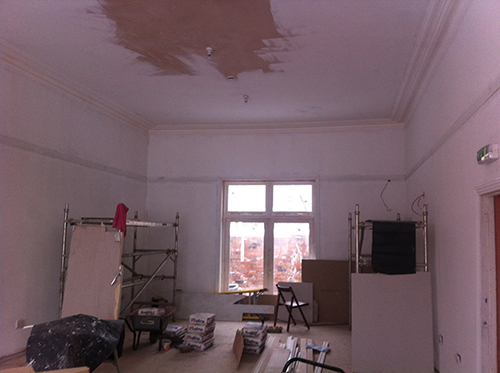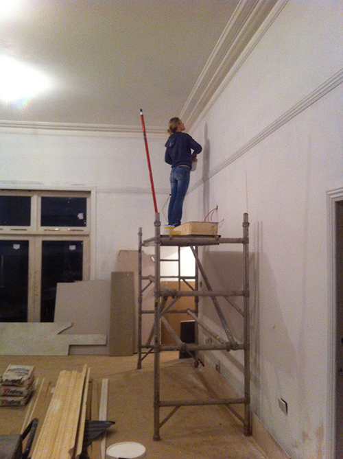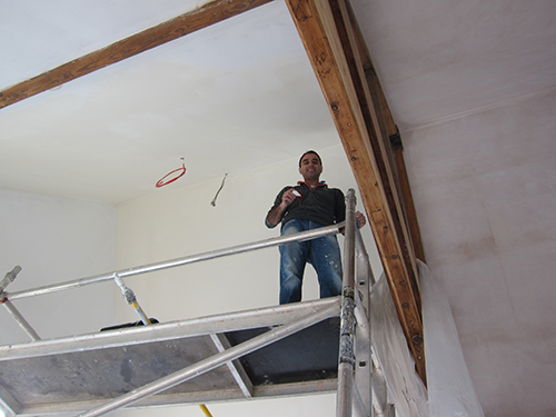 In the studio up the stairs we started painting the ceiling up in the apex sections. With a double tower Ayaz can just reach right to the top!
