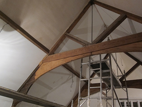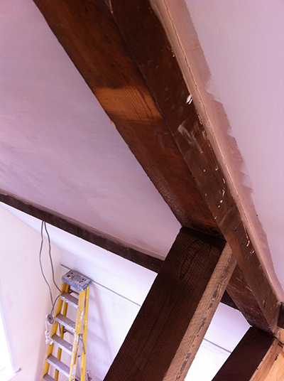 On the positive side though, the beams are almost completely stripped of all the old cruddy paint and the shop room is looking gooooood!