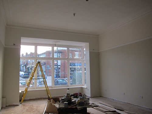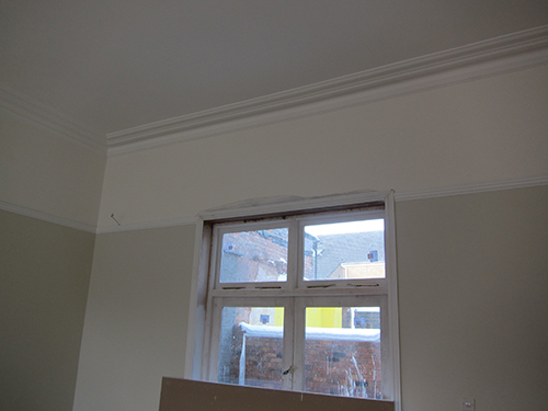 Then started at the top and painted the ceiling and the coving brilliant white...